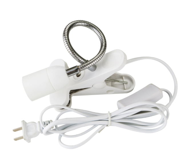 E27 plastic white lampholder with table clip, switch, cable and plug Email: lora@idaymay.com