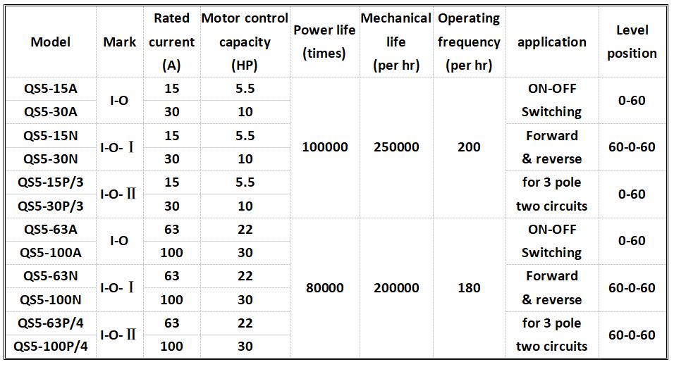 purpose QS5 cam switches are mainly used for timing / reverse startup and directly stop three phase different electrical motors. It is suitable for AC 50Hz, voltage to 500V, and capacity 7.5KW, and this product can also be used from one circuit to another.
