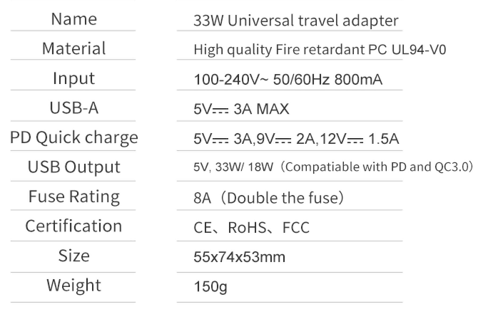 33W universal travel adapter high quality fire retardant plug and socket