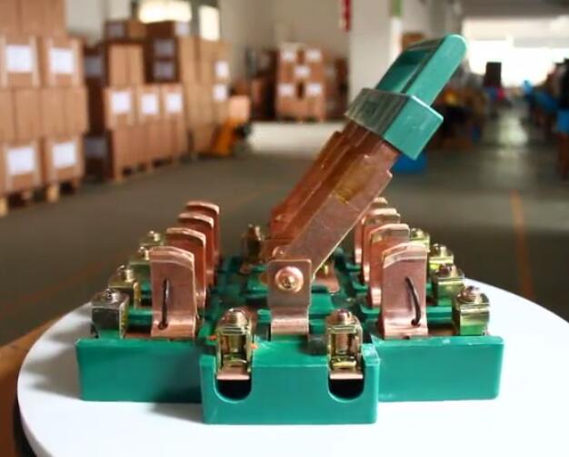 knife switch 4P 225A orange color Handle: PA66 flame retardant nylon Blade: 3.0mm Knife clip: Spring Knife seat: 1.7mm Shell: ABS+PC Knife clip: 1.8mm Base: DMC high temperature resistant resin Lower film: 3.0mm