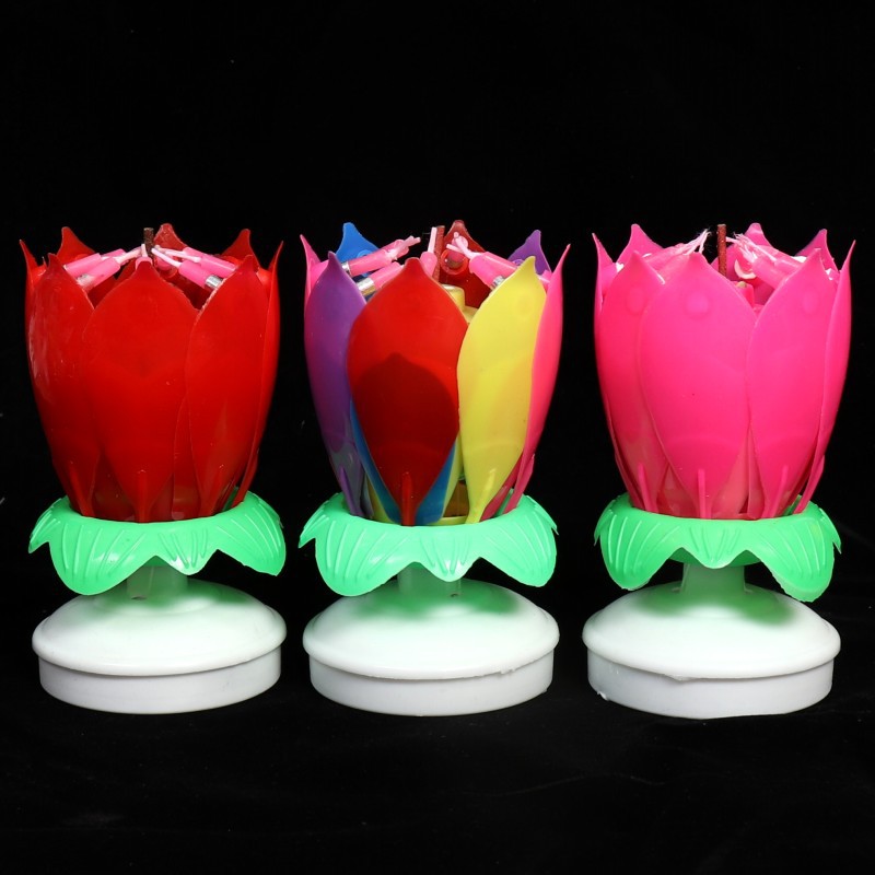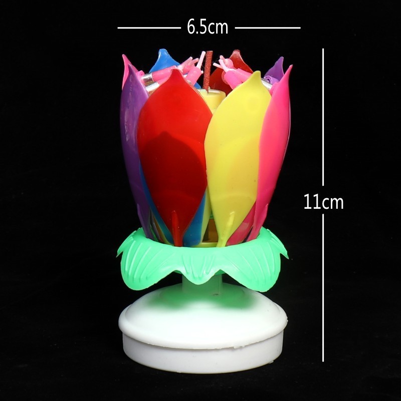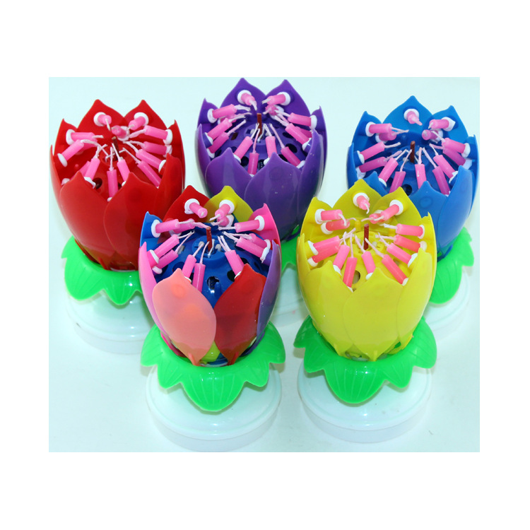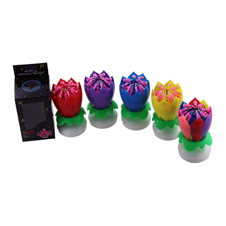 Location: FUZHOU IDAYMAY ELECTRICAL TECHNOLOGY CO.,LTD » LED light » Net red lotus singing happy birthday music candle Creative Color lotus blossom rotating cake decorative candle