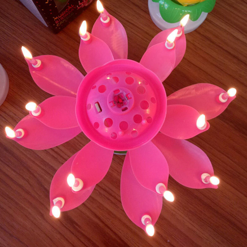 Net red lotus singing happy birthday music candle Creative Color lotus blossom rotating cake decorative candle