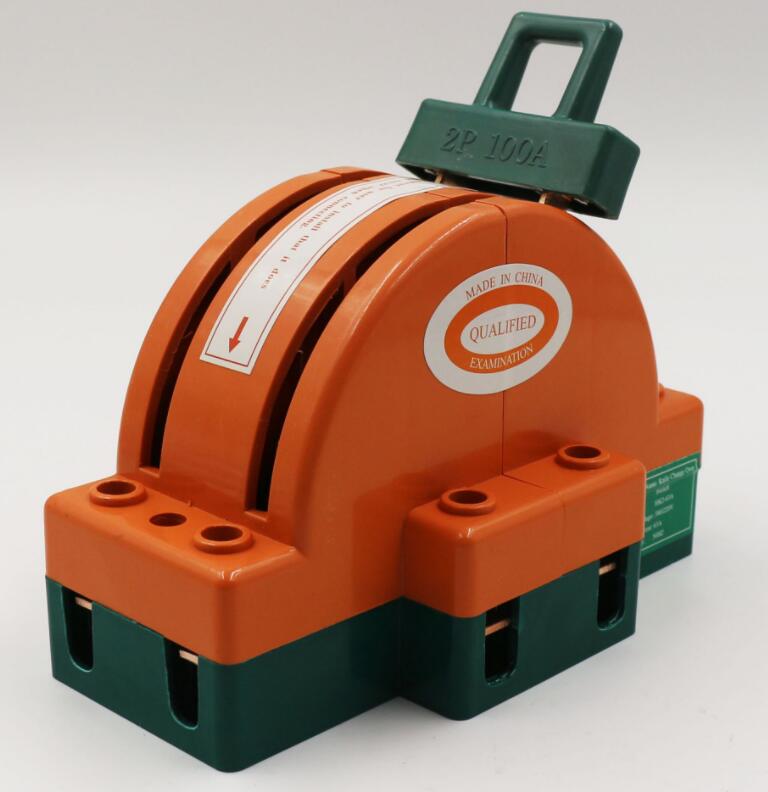 knife switch 2P 100A Handle: PA66 flame retardant nylon Blade: 2.1 mm Knife clip: spring (guarantee the knife clip never deformed) Cutter seat: 1.6 mm Shell: ABS+PC Knife clip: 1.6 mm Base: DMC Resin (high temperature resistant resin) Lower slice and bend: 1.8 mm