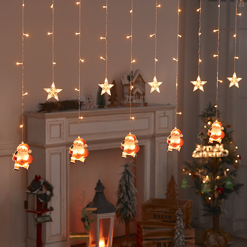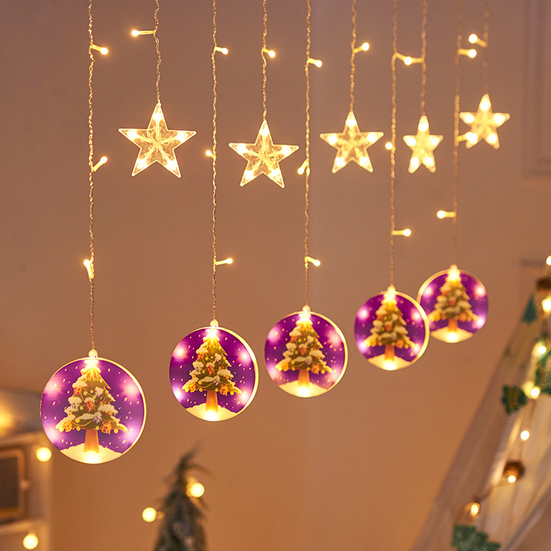 Christmas light string LED Christmas tree elderly snowman crutch holiday decorative light pentagonal star ball atmosphere colored light
