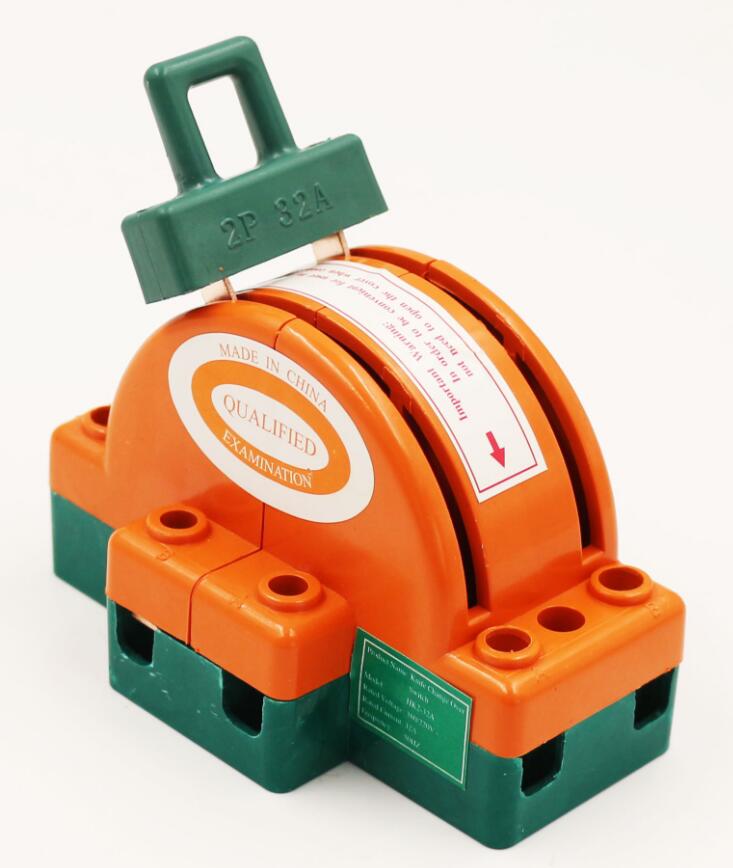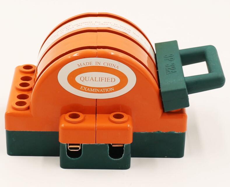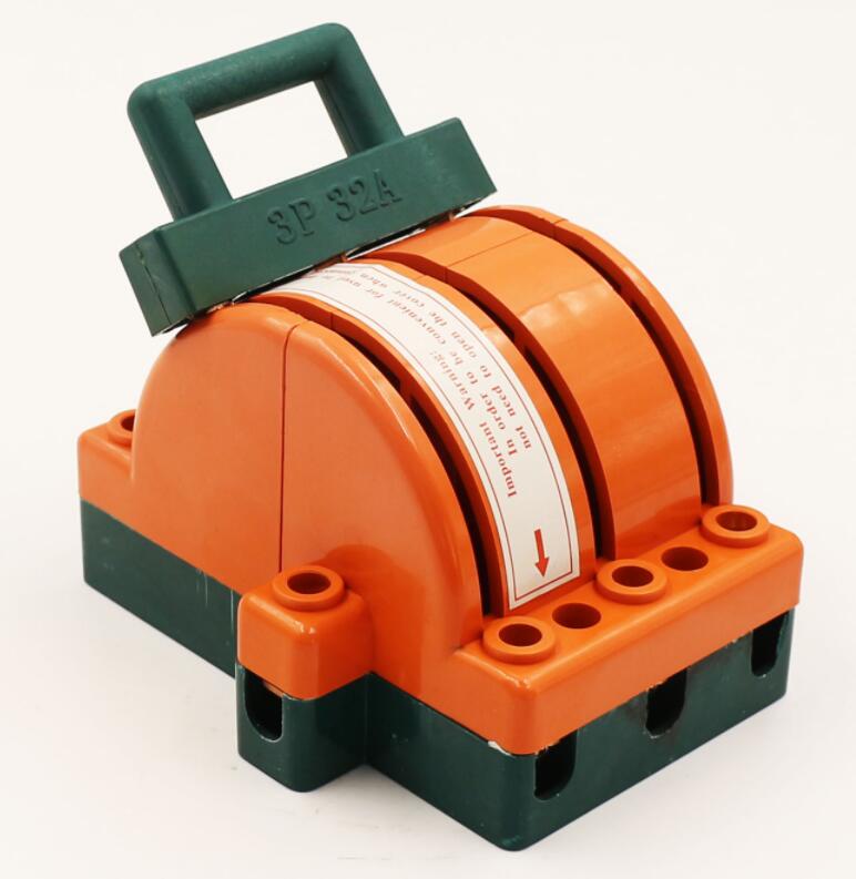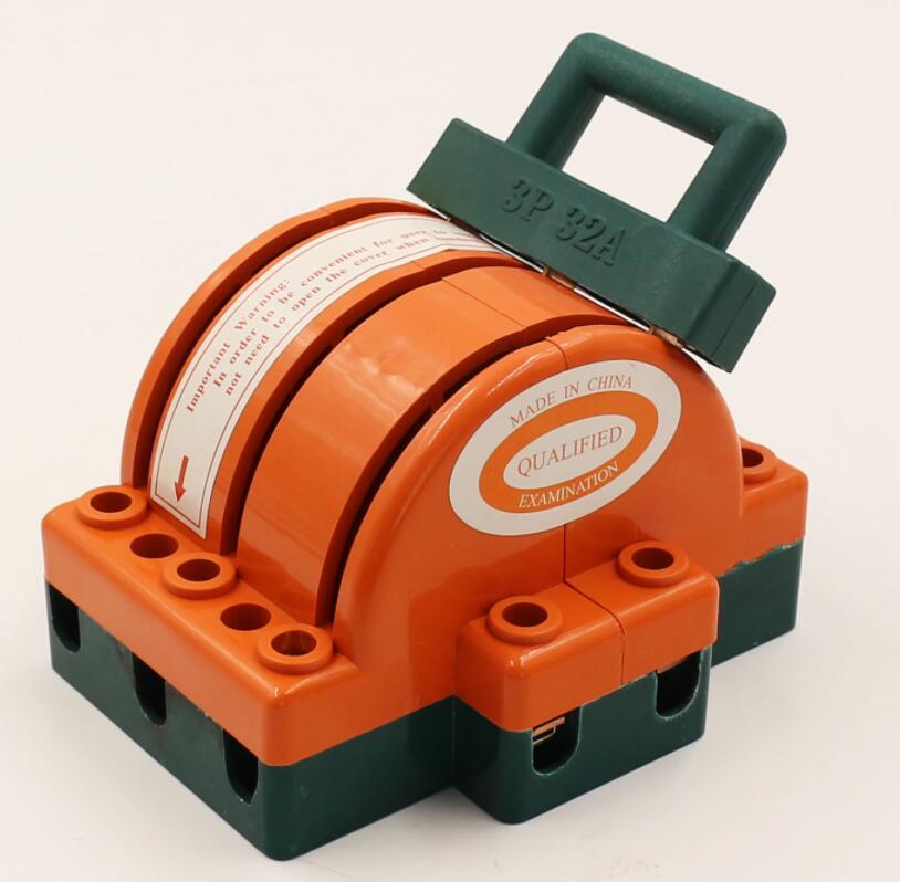 knife switch 3P 32A orange color Handle: PA66 flame retardant nylon Blade: 1.4 mm Knife clip: spring (guarantee the knife clip never deformed) Cutter seat: 1 mm Shell: ABS+PC Knife clip: 0.9 mm Base: DMC Resin (high temperature resistant resin) Lower slice and bend: 1.2 mm